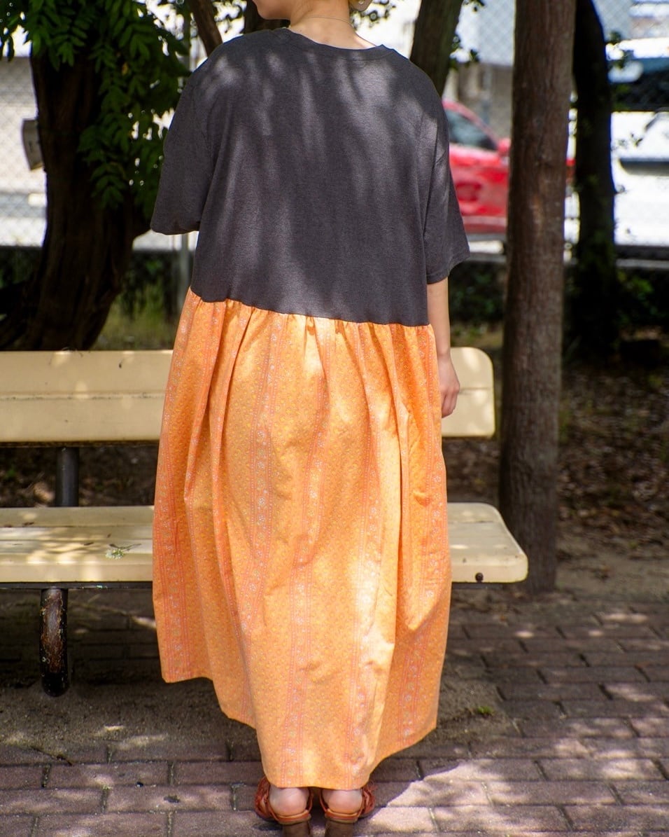 Tシャツもオーバーサイズかつ、スカート部分もギャザー入りのため