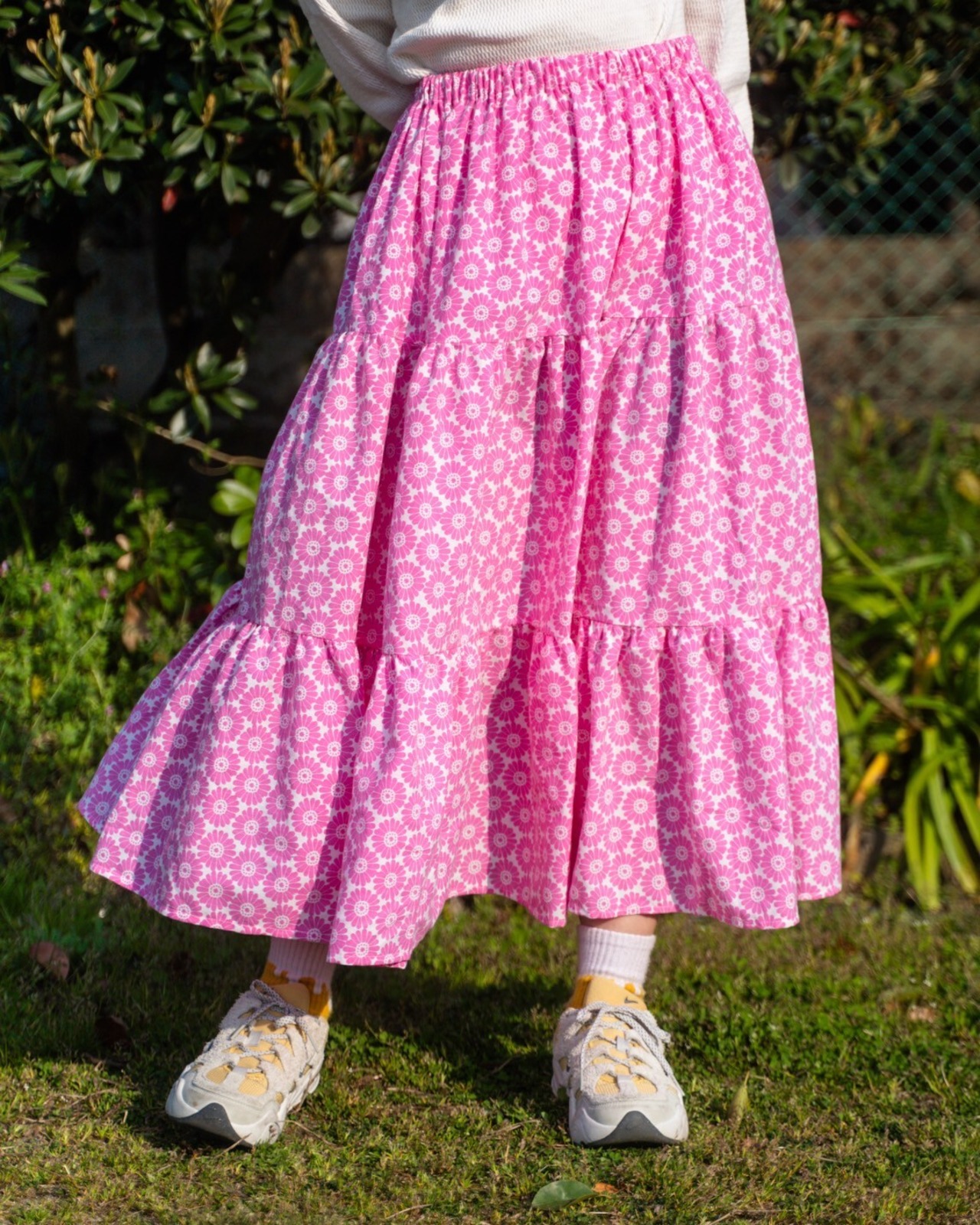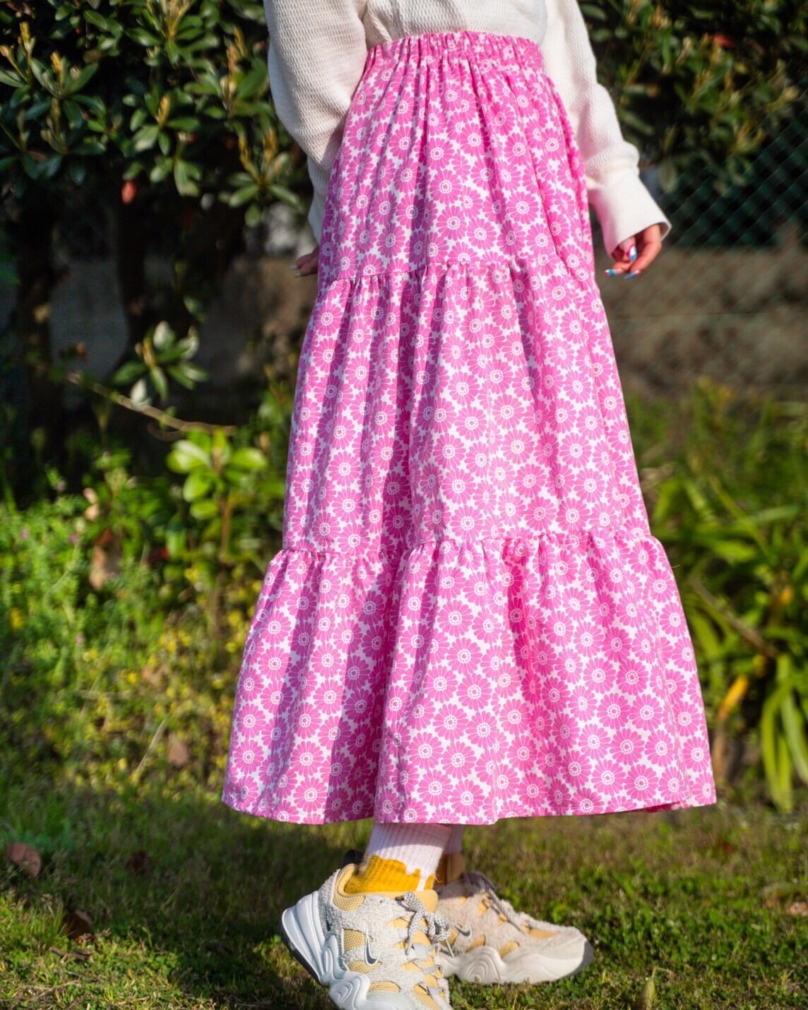アメリカ仕入れのヴィンテージファブリックを使用し作成したティアードスカート。