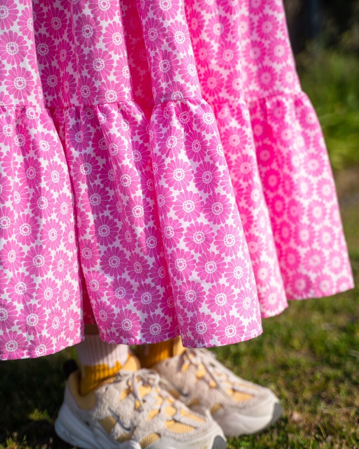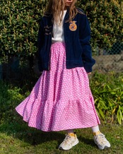 ギャザーもしっかり入っているため、ふんわりAラインシルエットです♪