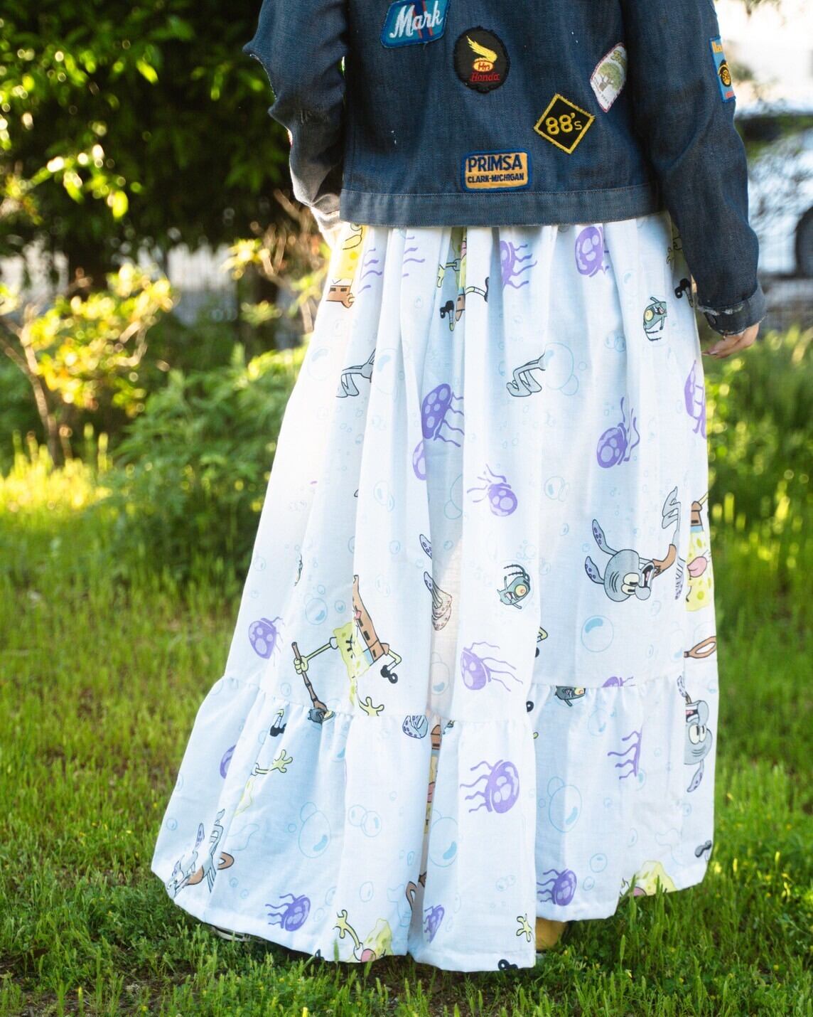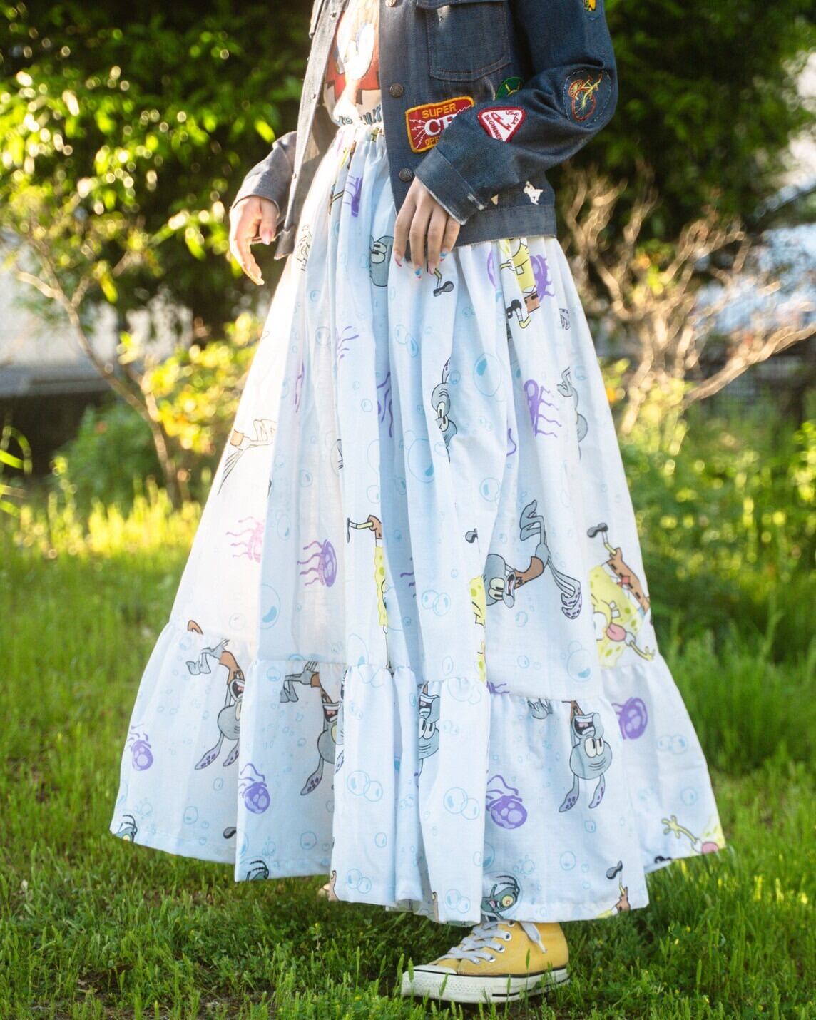 アメリカ仕入れのキャラクターシーツを使用し作成したティアードスカート。