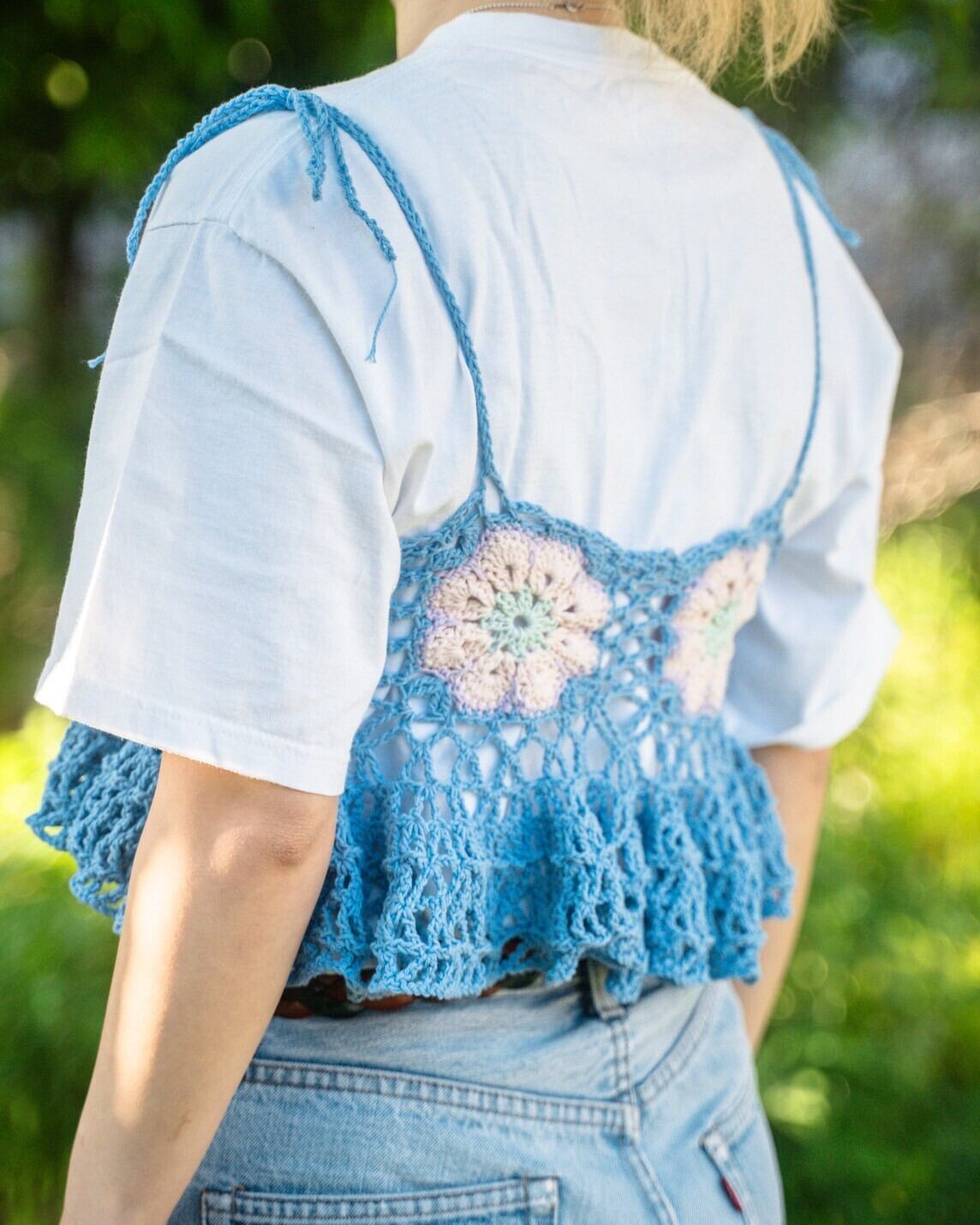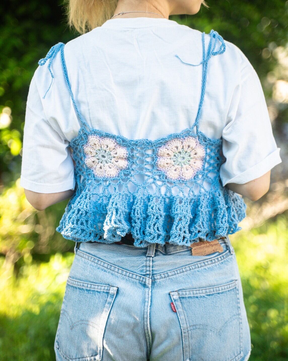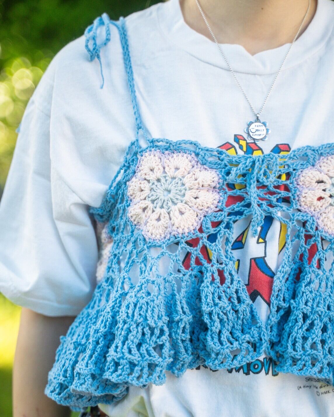 一つ一つ手編みで作成した、オリジナルハンドメイドのビスチェ。