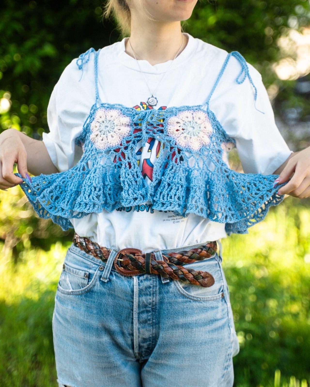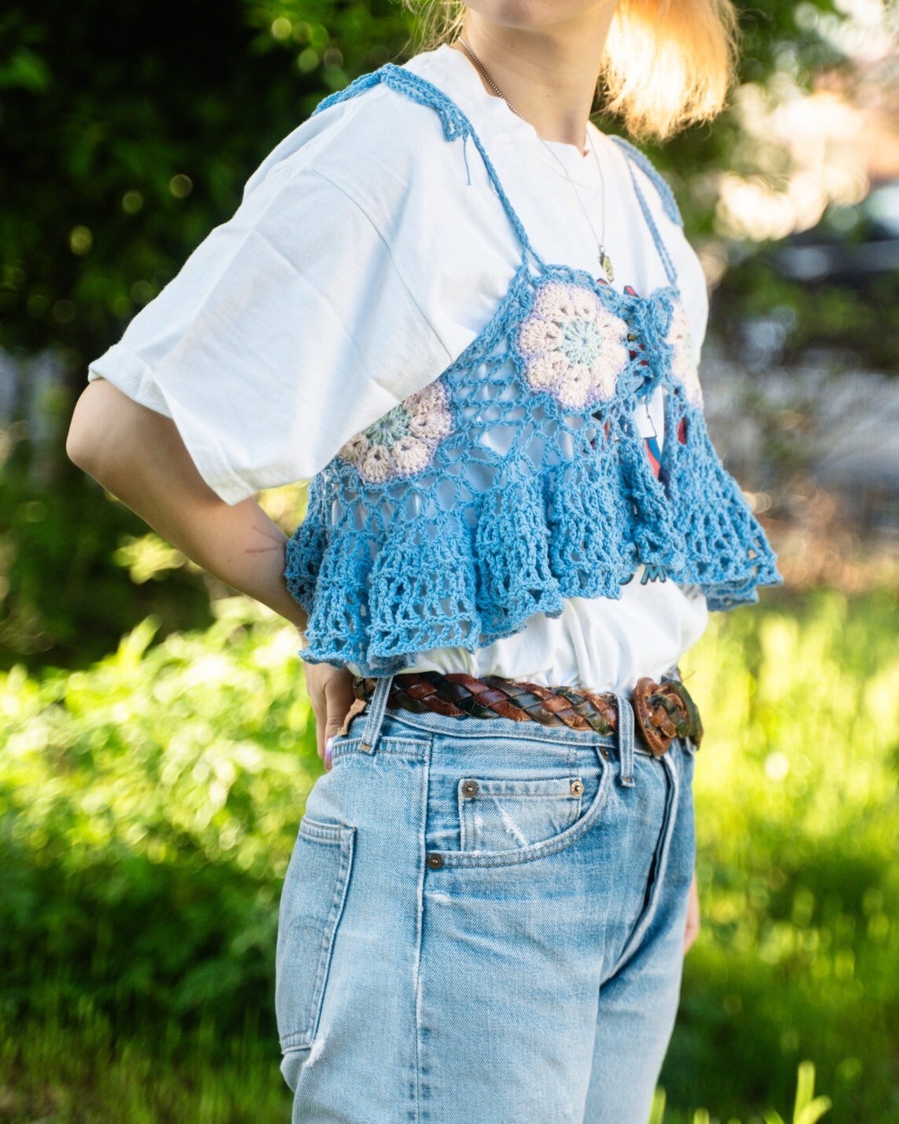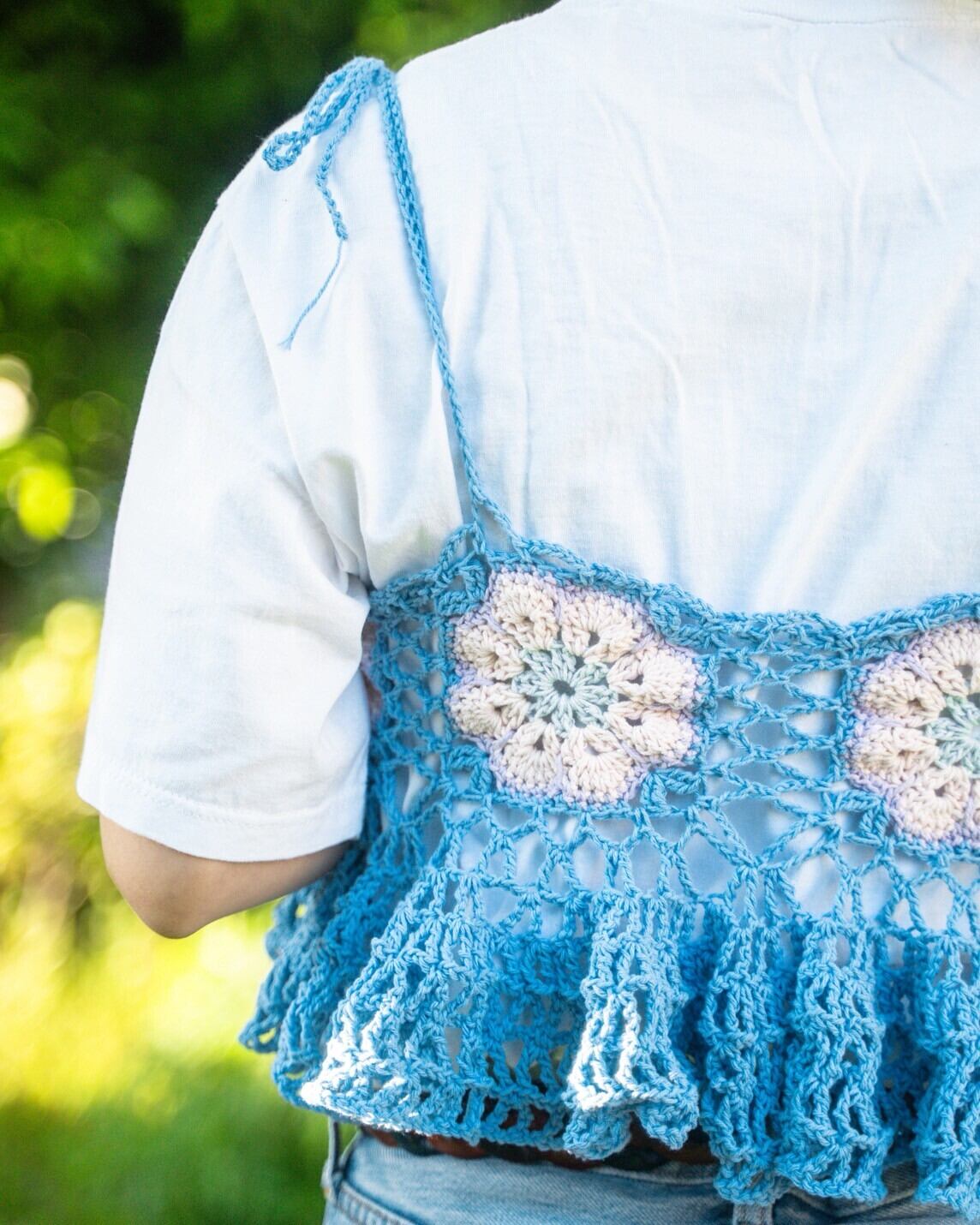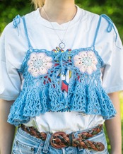 一つ一つ手編みで作成した、オリジナルハンドメイドのビスチェ。