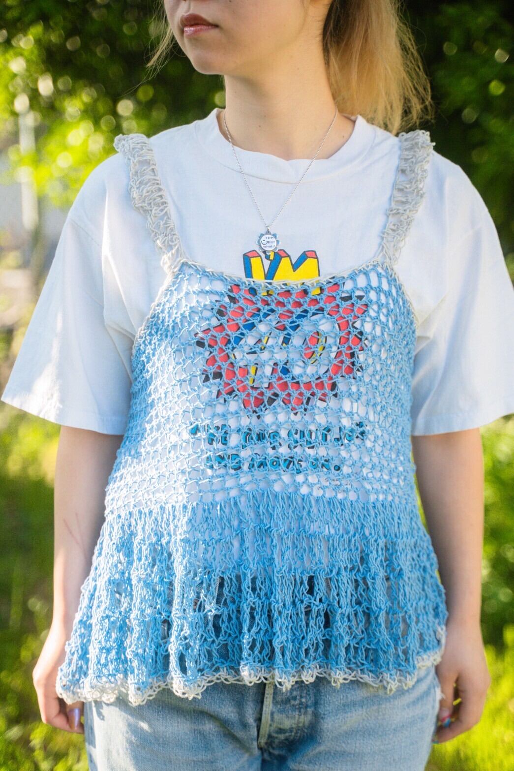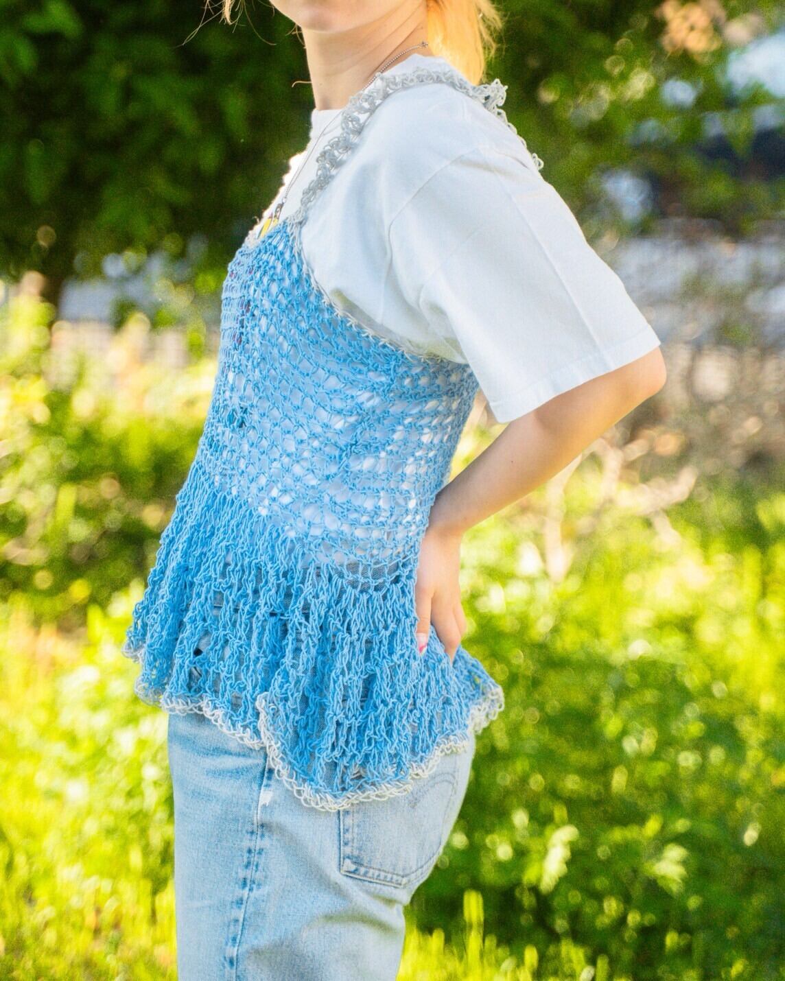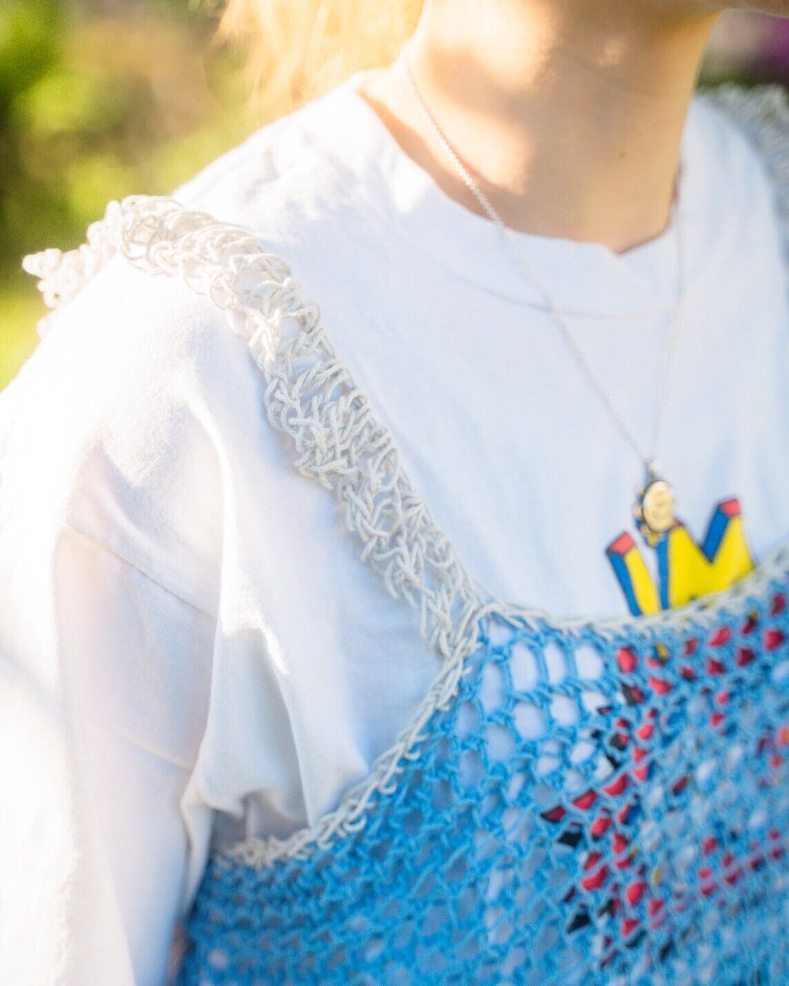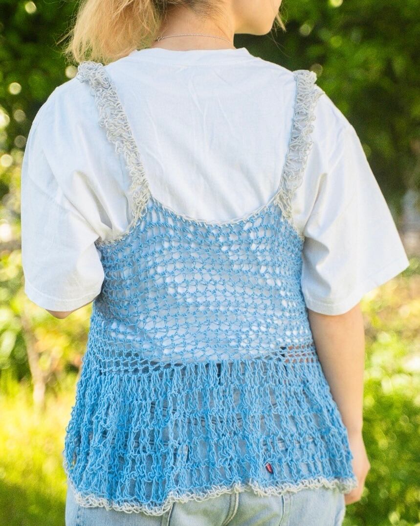 一つ一つ手編みで作成した、オリジナルハンドメイドのビスチェ。