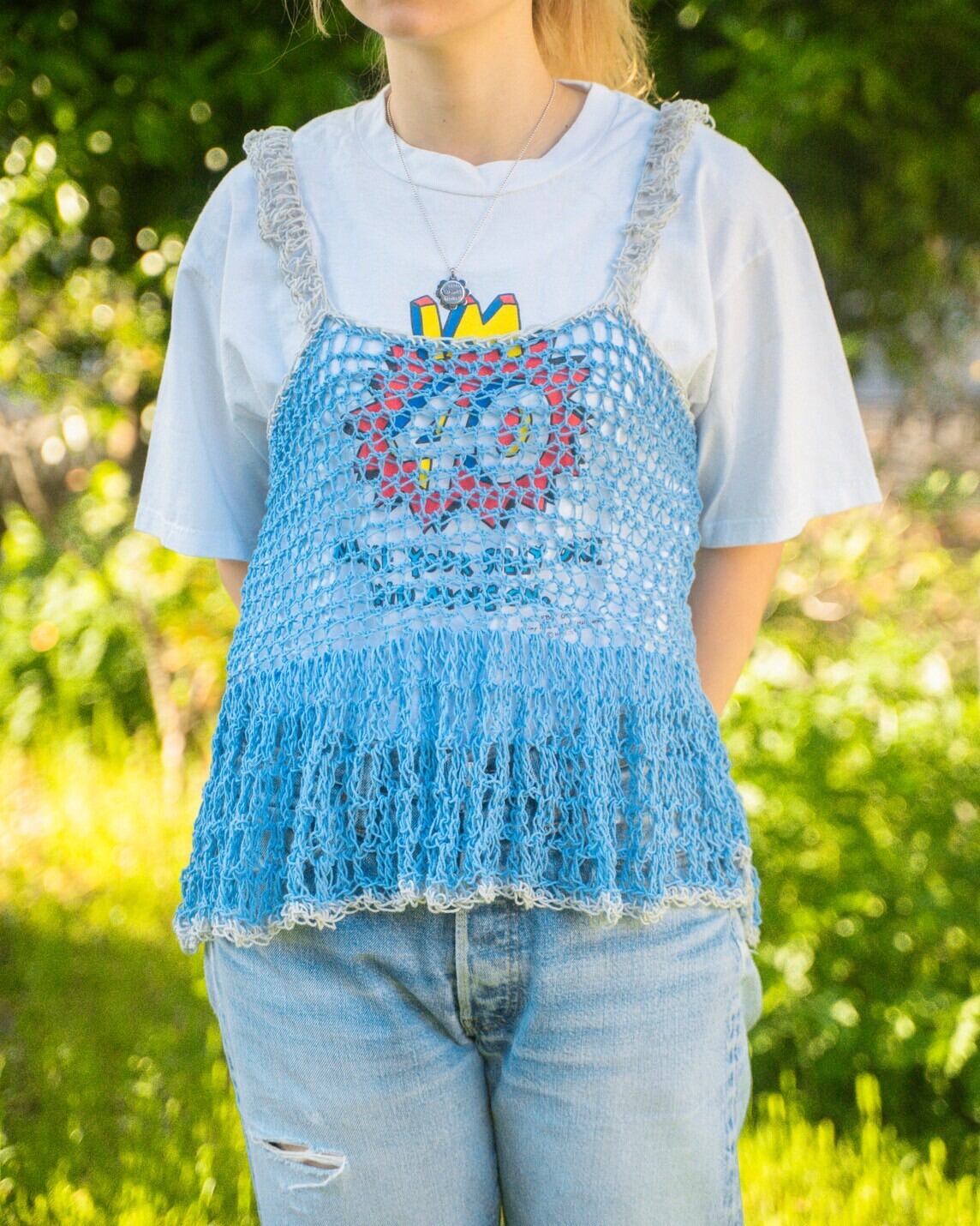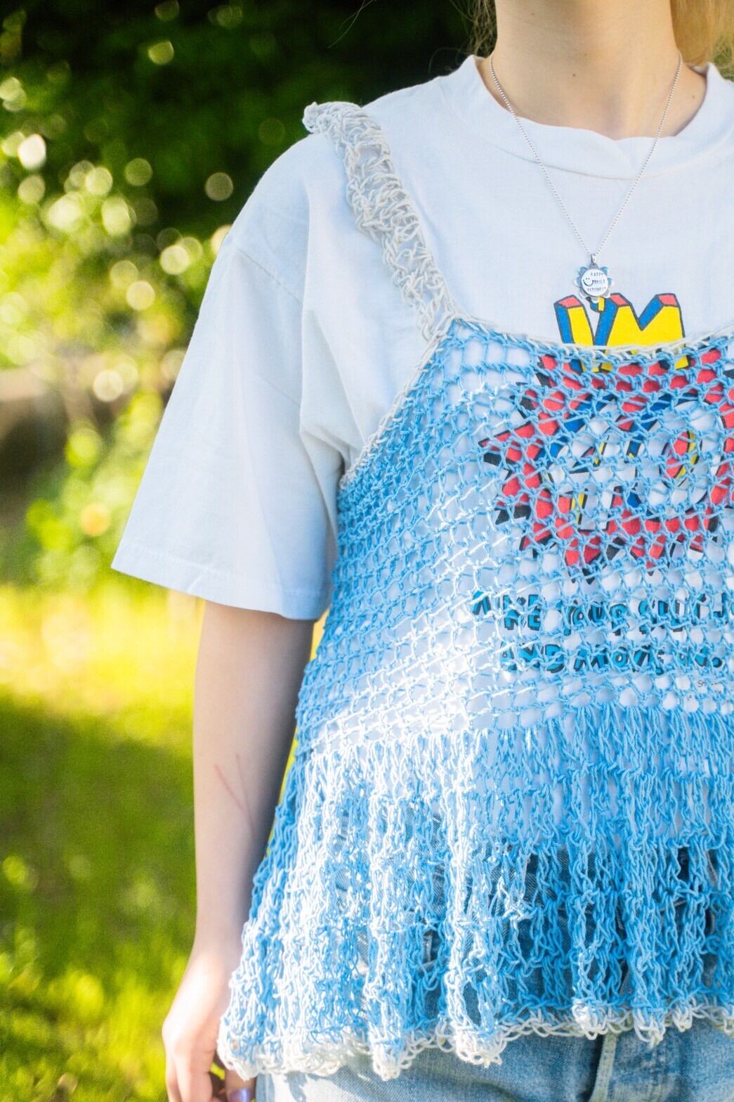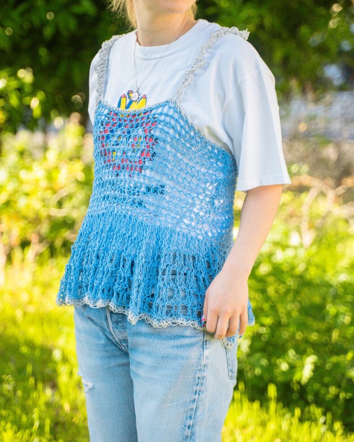 一つ一つ手編みで作成した、オリジナルハンドメイドのビスチェ。