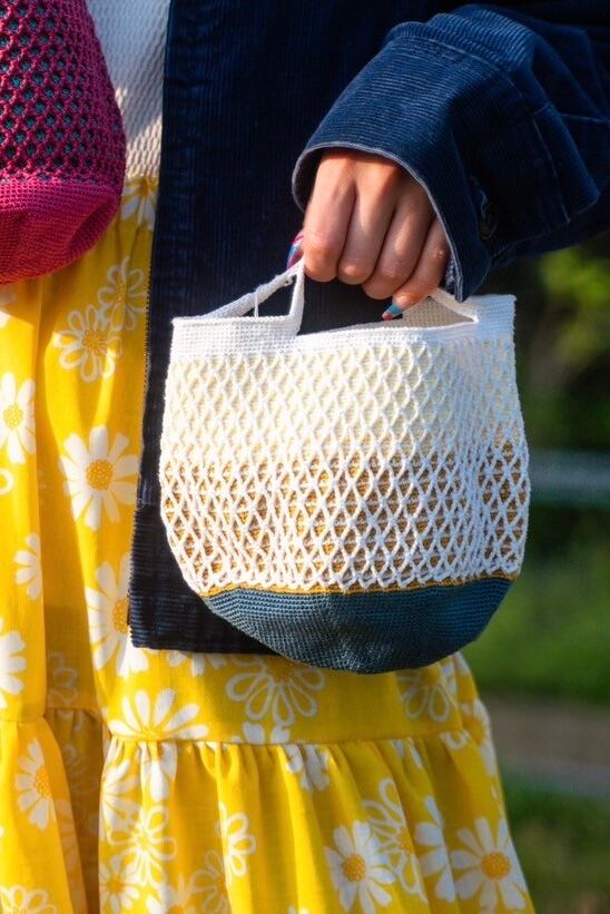 一つ一つ手編みで作成した、オリジナルハンドメイドのバッグ。